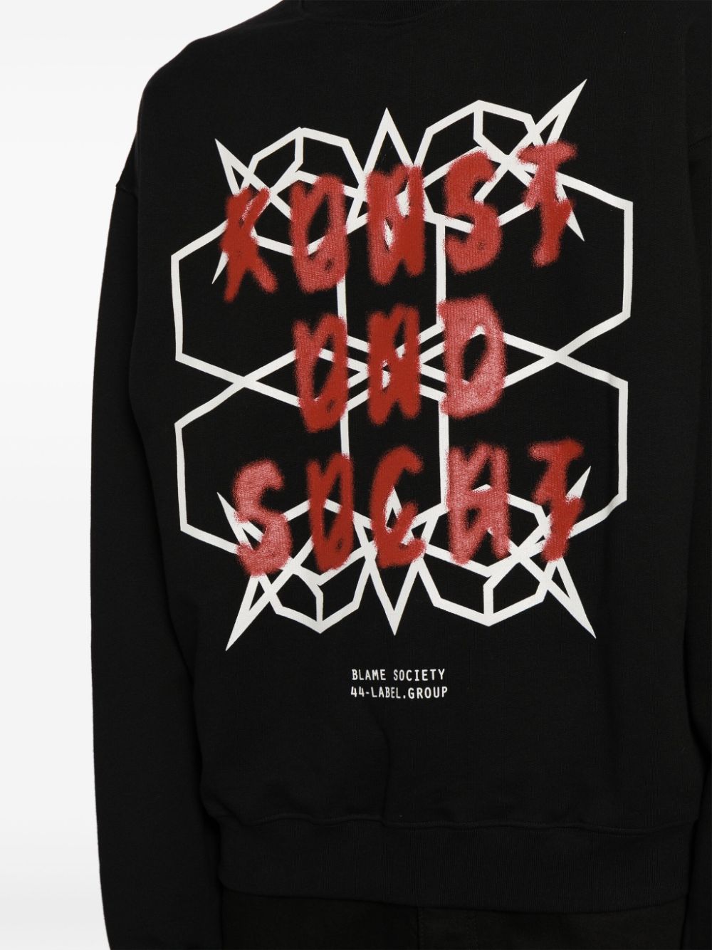 graphic-print cotton sweatshirt from 44 LABEL GROUP featuring graphic print to the front, logo print to the rear, crew neck, drop shoulder, long sleeves, ribbed cuffs and hem, jet black and cotton.