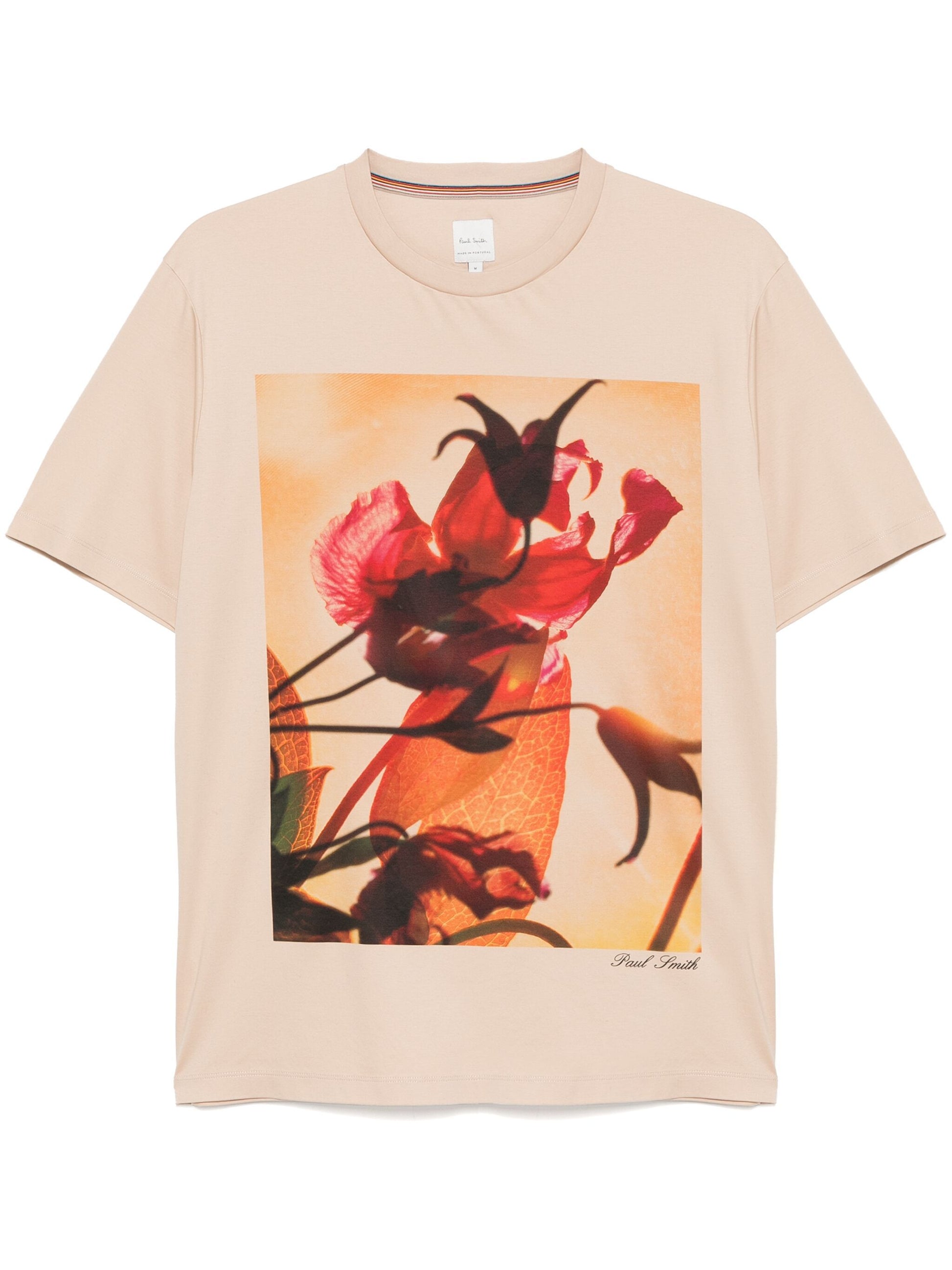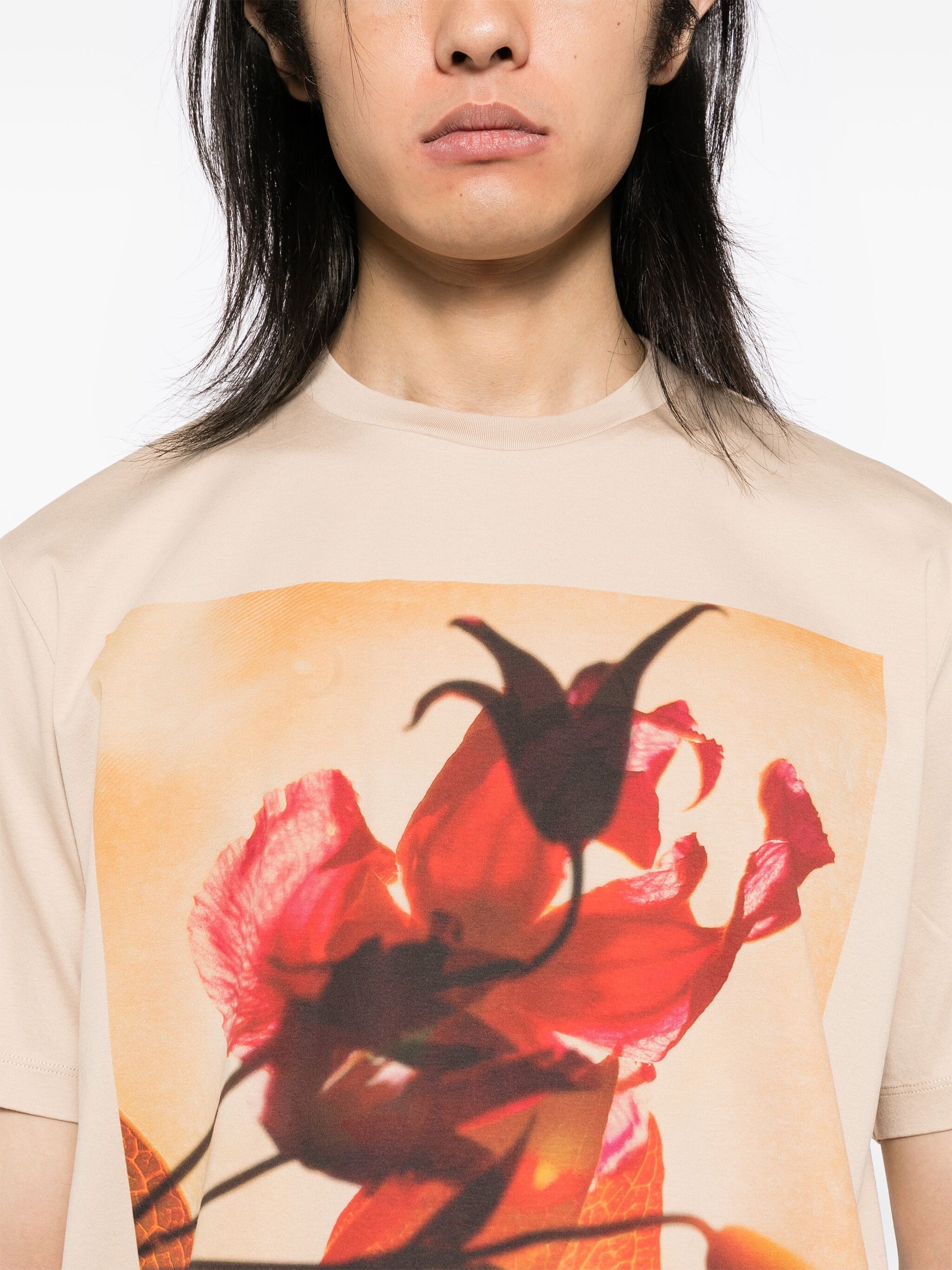 This Graphic-Printed T-Shirt features a cotton jersey texture in beige and multicolor, with a graphic print on the front. The crew neck and short sleeves provide a classic and versatile look, while the straight hem adds a touch of modernity.