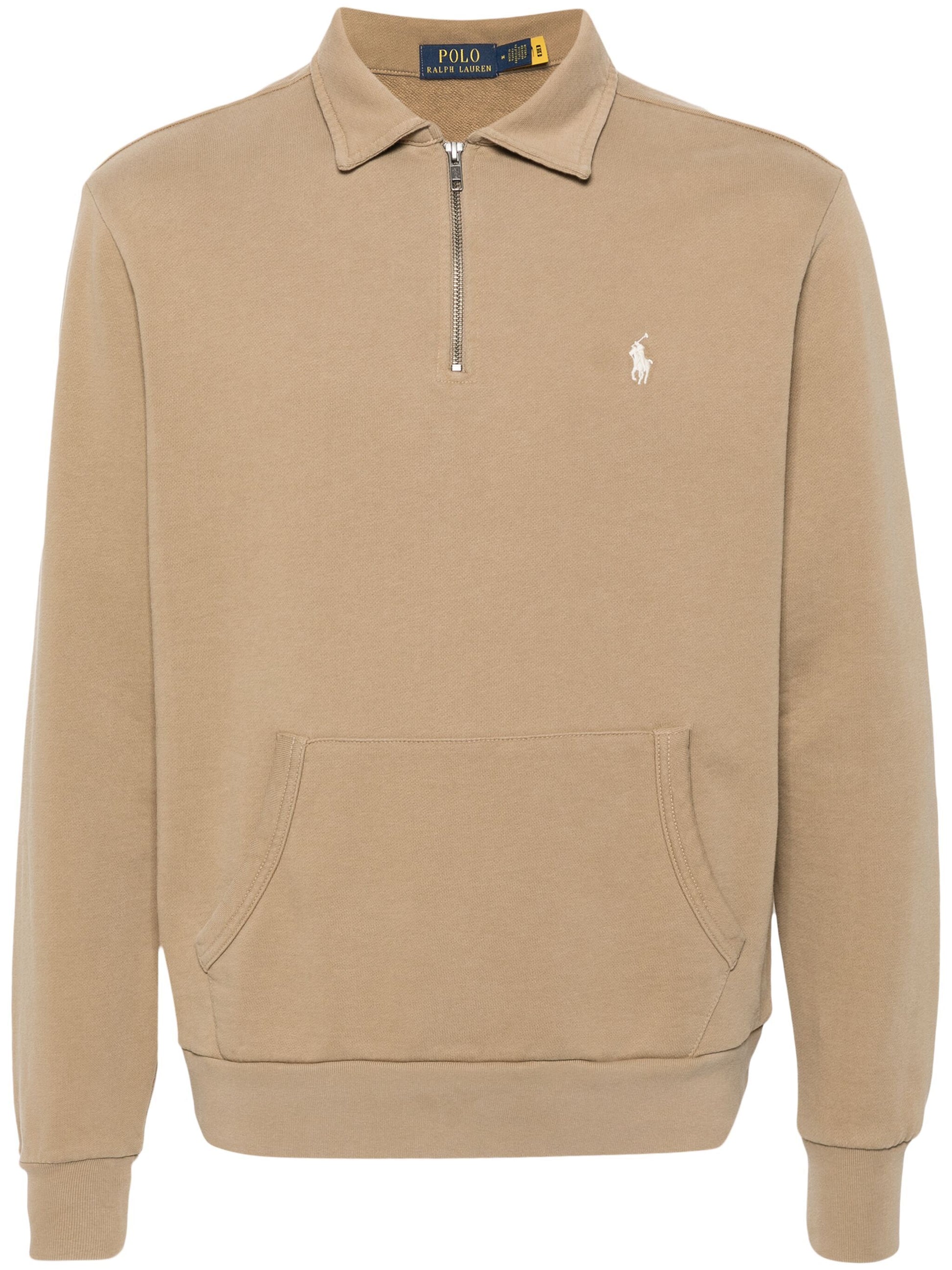 Stay cozy and stylish in this Half-Zip Jersey Sweatshirt. Made from breathable cotton with a textured finish, it features a convenient half-zip front, iconic Polo Pony motif, and a versatile polo collar. The ribbed cuffs and hem provide a snug fit, while the front pouch pocket adds functionality. Perfect for any casual outfit.