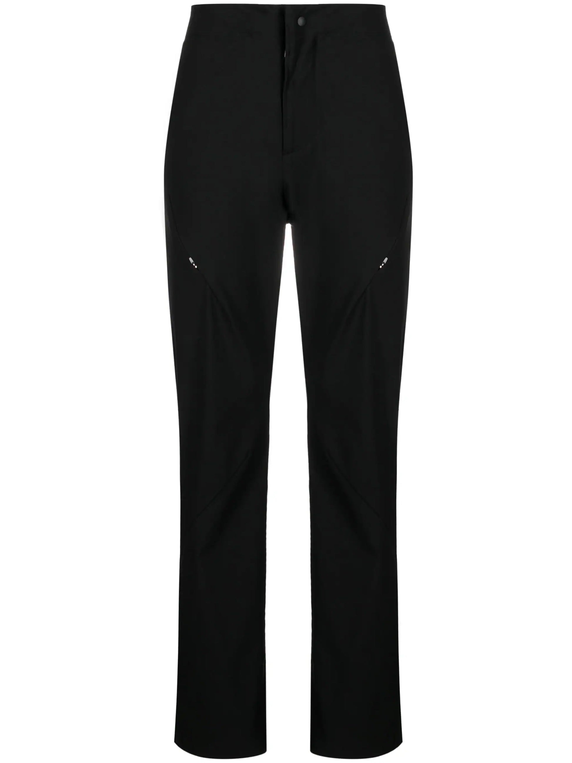 black high-waisted two zip-fastening pockets rear zip-fastening pocket tapered leg concealed fly and button fastening straight hem