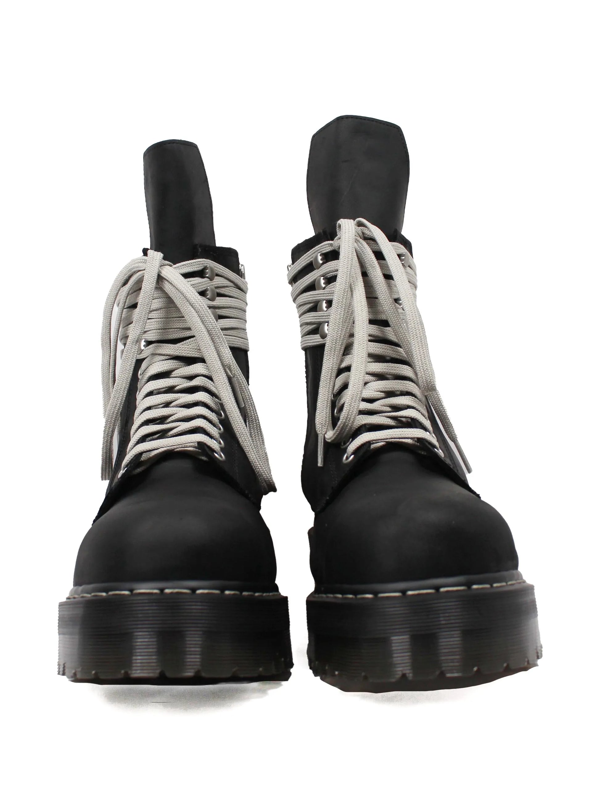 These Lace-Up Platform Boots combine style and functionality with black wraparound laces, a sturdy platform sole for added height, and a convenient zip fastening for easy wear. Featuring a pull-tab at the rear and a comfortable round toe, they offer a secure fit and modern silhouette perfect for elevating your footwear collection.