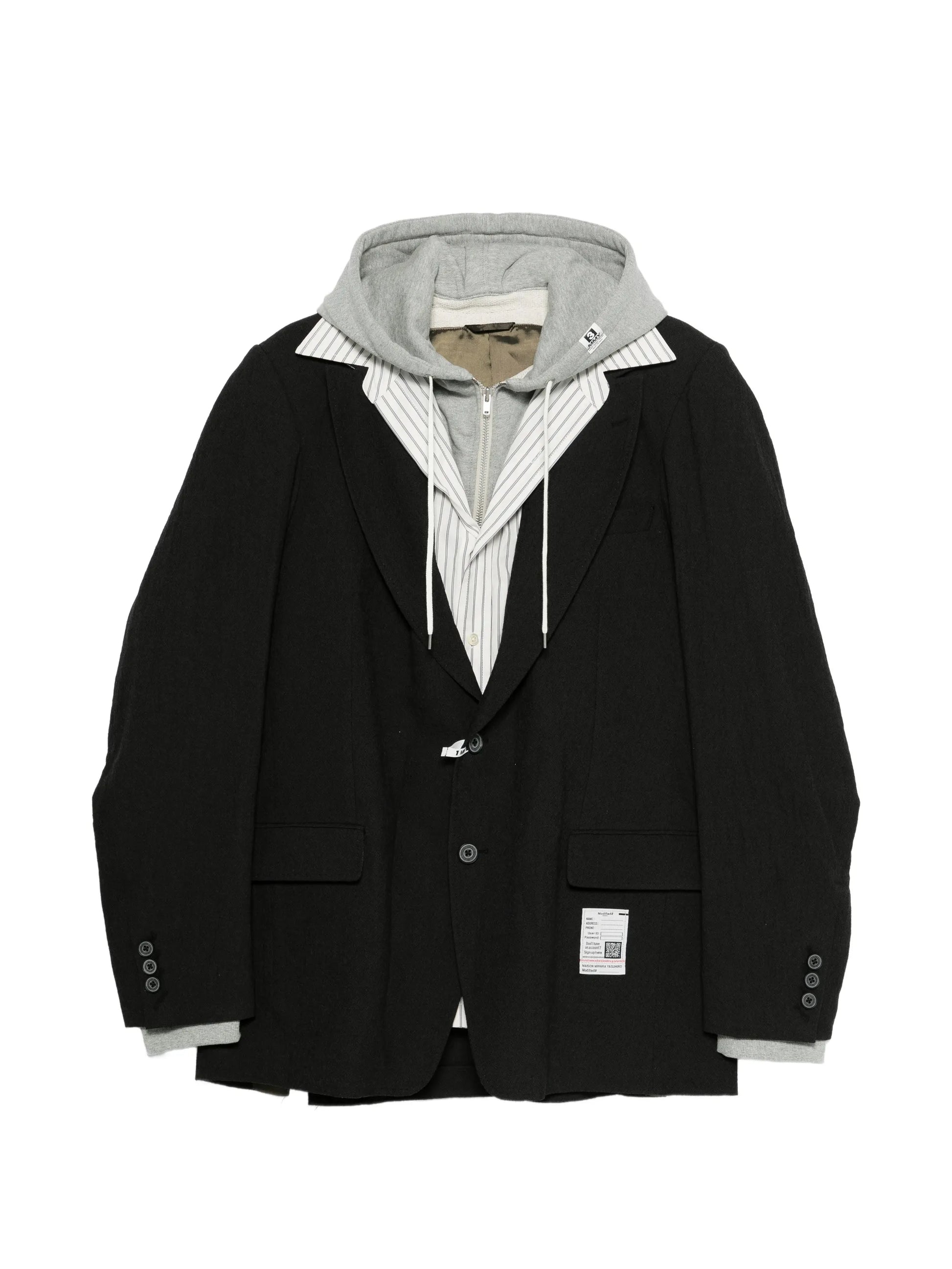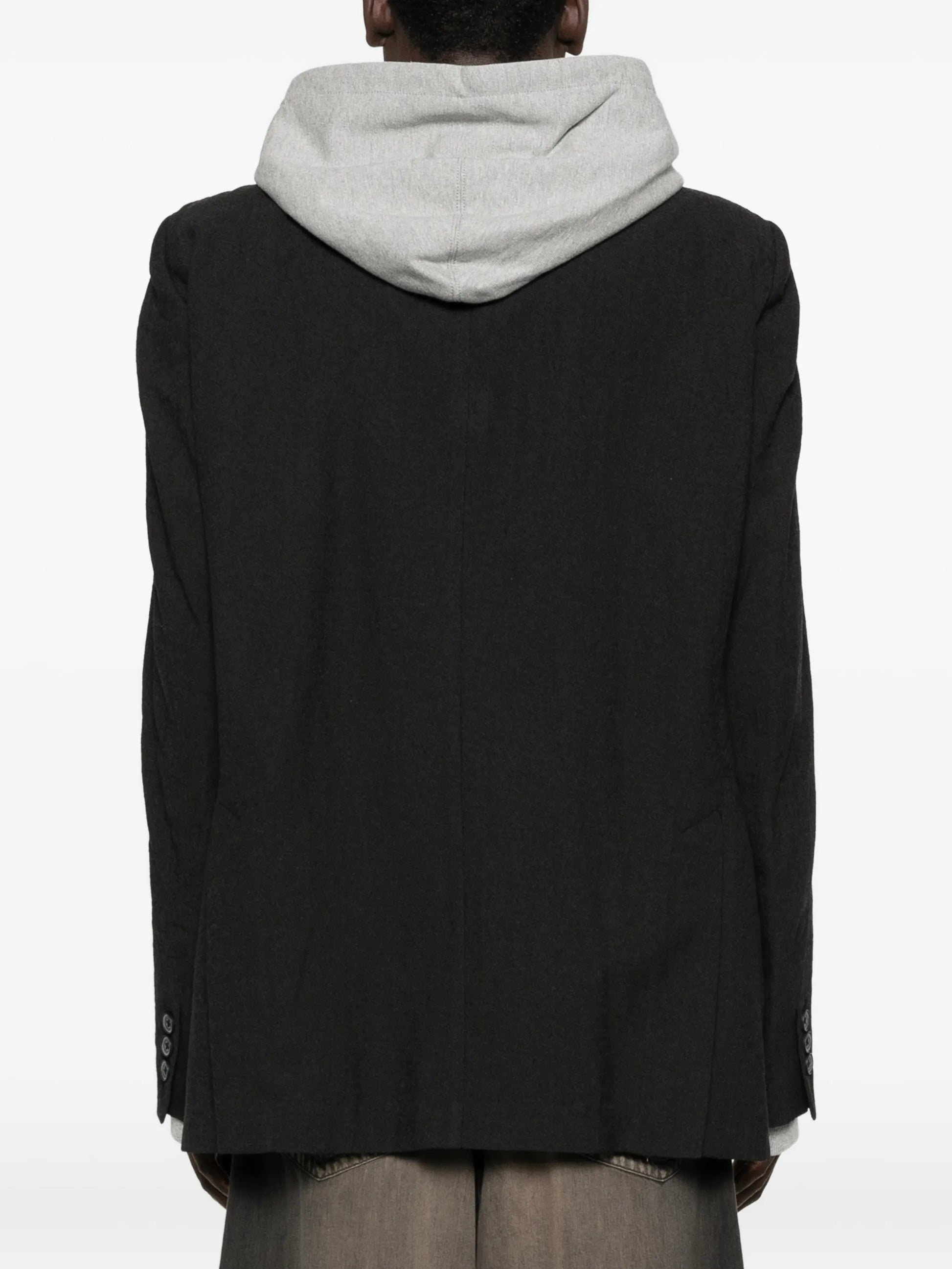 Black blazer constructed with triple-layered design for enhanced structure and durability. Notched lapels create a contemporary silhouette, whilst button fastening provides classic closure with modern refinement. Welt pockets offer sophisticated storage without disrupting the tailored line, and buttoned cuffs deliver polished finishing detail. An investment piece engineered for professional environments and elevated occasions, this blazer commands presence through meticulous construction and timeless design.