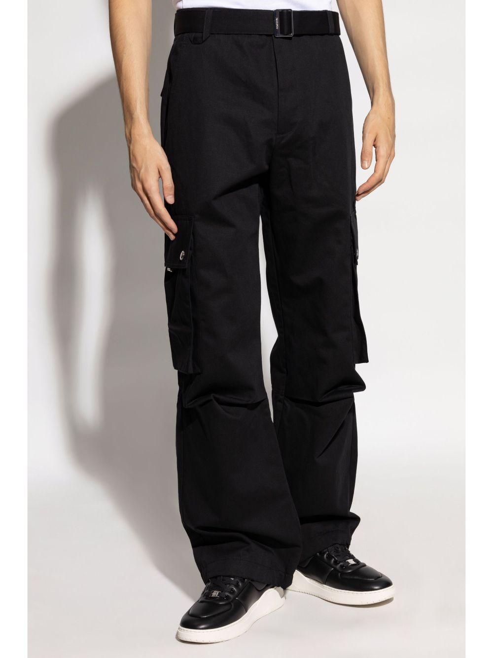 These black cotton blend cargo trousers feature a belted waist and wide leg design for a comfortable and stylish fit. With two side cargo pockets and a rear flap pocket, these trousers offer practicality and functionality. Perfect for any occasion, these trousers are a must-have for your wardrobe.