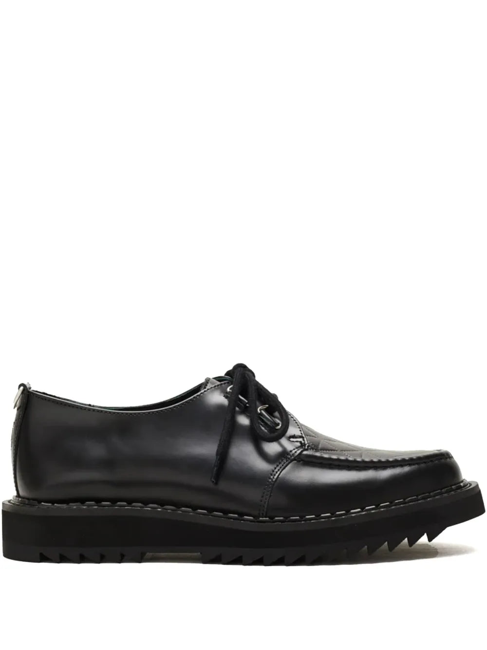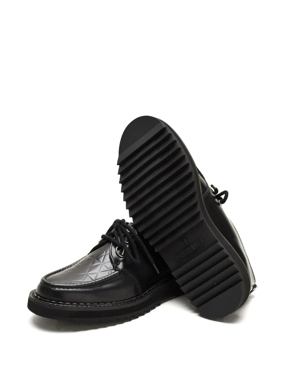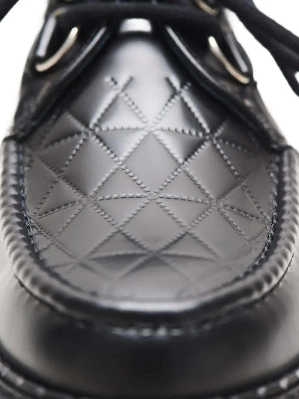 Crafted with a sleek black lace-up fastening and durable rubber sole, our Leather Boat Shoes are the perfect choice for any stylish adventure. The debossed detailing adds a touch of sophistication, making these shoes not only comfortable, but also versatile and stylish. Take on any terrain with confidence and style in our Leather Boat Shoes.