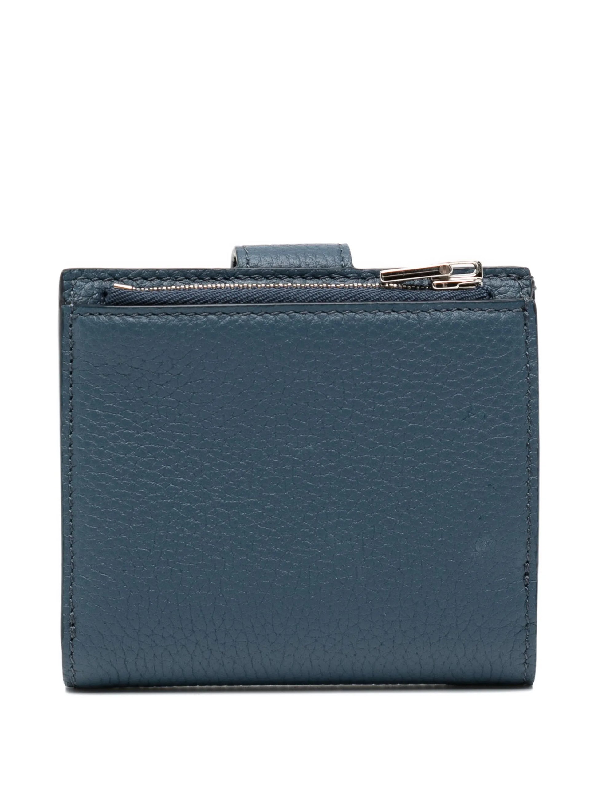 This navy blue leather wallet features a secure button fastening and a zip-fastening compartment, combining elegant design with practical organization. Its expert craftsmanship ensures durability while keeping your essentials safely stored and easily accessible.