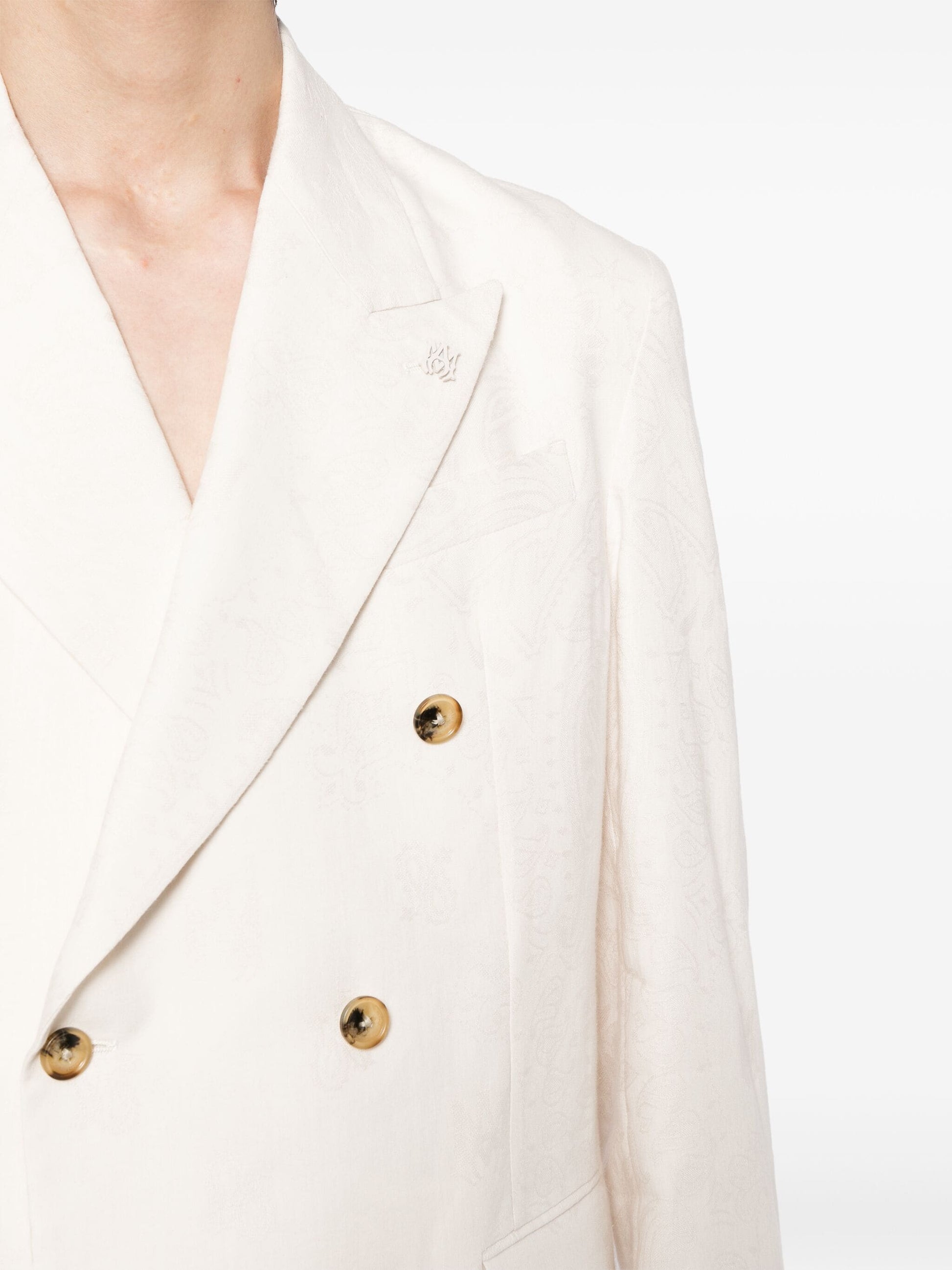 ivory white linen-cotton blend double-breasted button fastening logo-embroidered collar two side flap pockets buttoned cuffs This item contains at least 50% materials which are certified or widely recognised as having a lower environmental impact through production and/or manufacturing processes that reduce water consumption and the use of harmful chemicals, or re-use by-products of the production process.