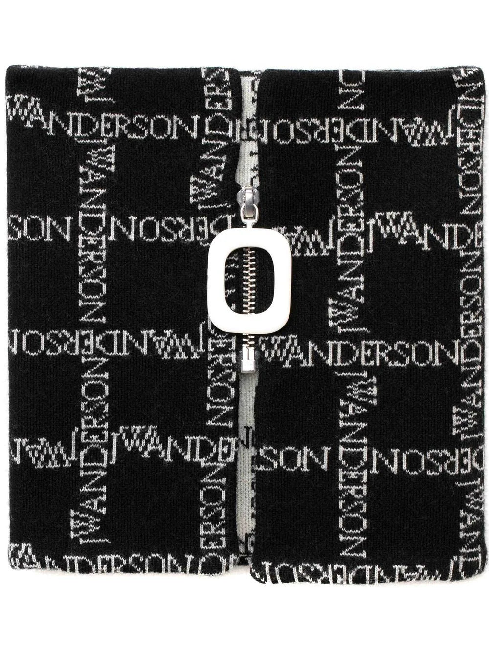 Black/white merino logo-grid zip-up neckband from JW Anderson featuring two-tone design, intarsia-knit logo and zip fastening.