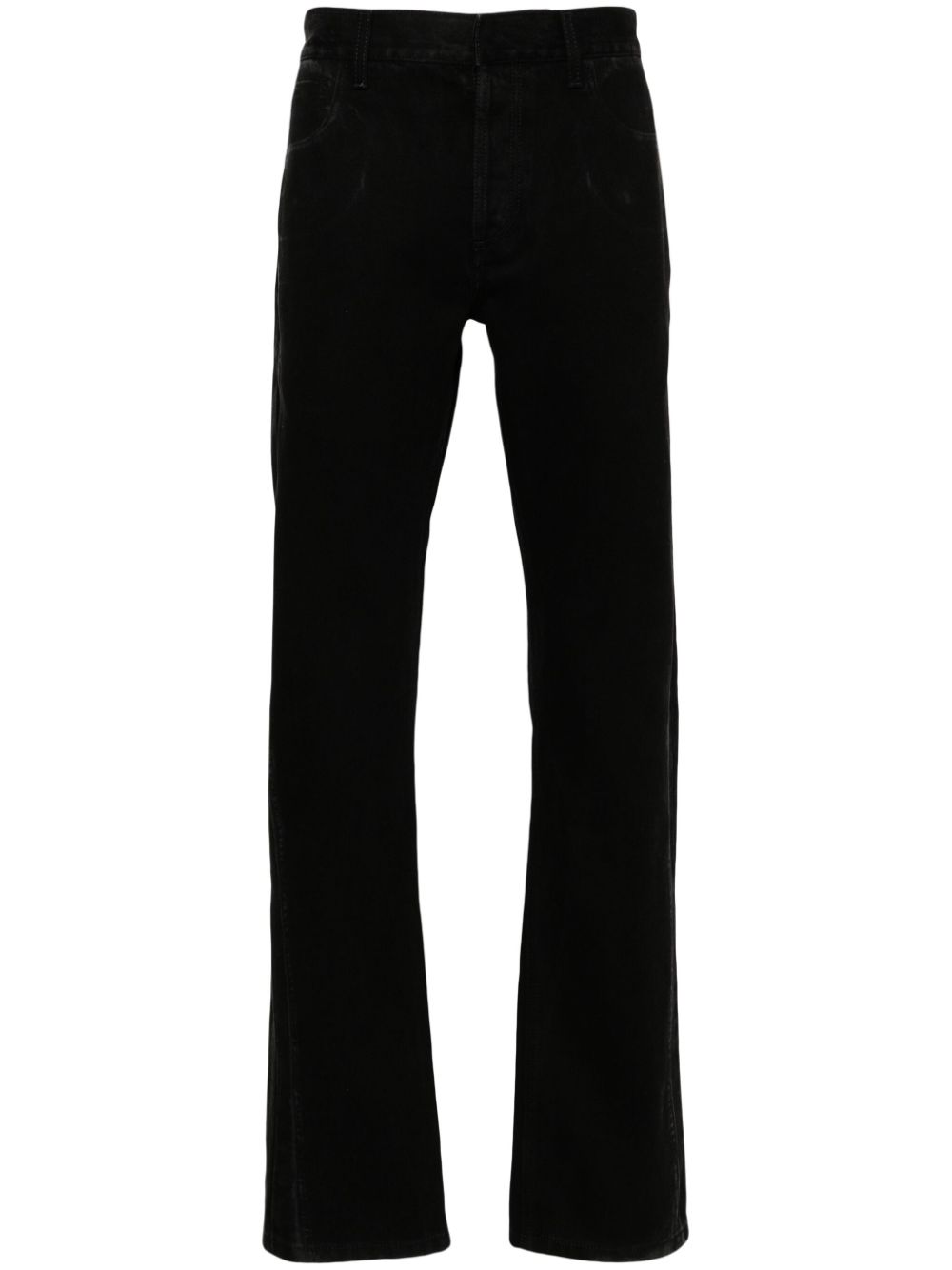 These Logo-Patch Jeans feature black cotton denim, belt loops, classic five pockets, a logo patch on the rear, and a straight leg. With a concealed fly and button fastening, they provide a sleek and stylish look for any occasion. Made of high-quality materials, these jeans offer durability and comfort, making them a must-have for any wardrobe.