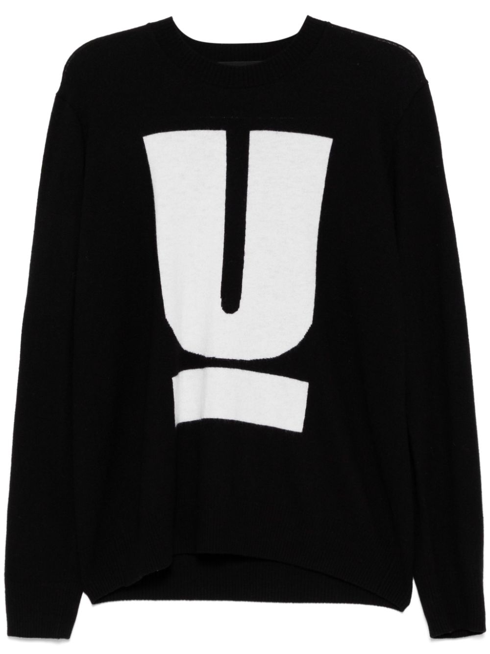 This Logo-Print Jumper features a knitted construction in classic black color, with a comfortable crew neck and long sleeves. The ribbed cuffs and hem ensure a snug fit, keeping you warm and stylish. Perfect for any occasion, this jumper offers both comfort and a sleek, professional look.