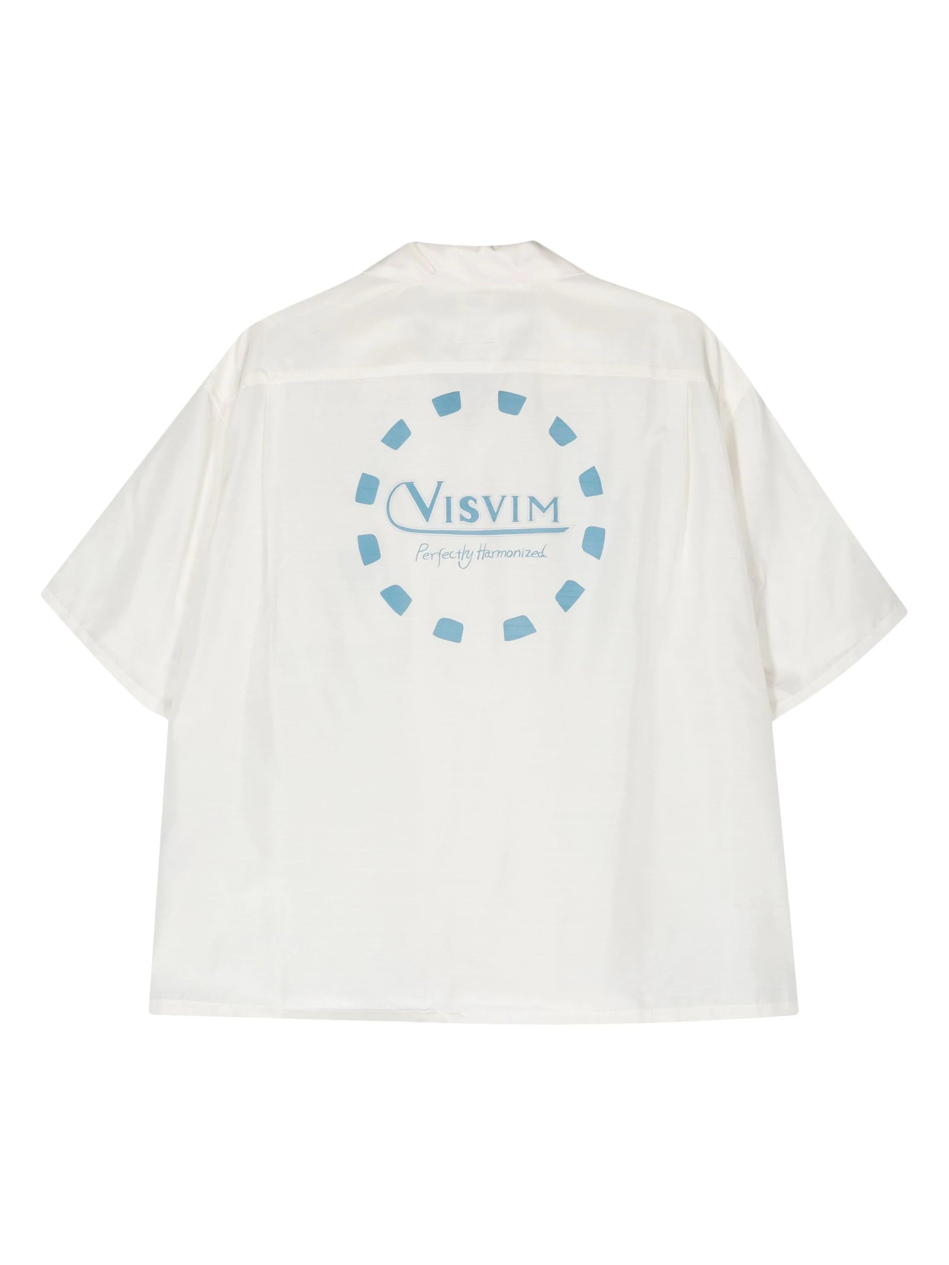 off-white silk logo print at the chest and rear camp collar front button fastening drop shoulder short sleeves chest patch pocket straight hem