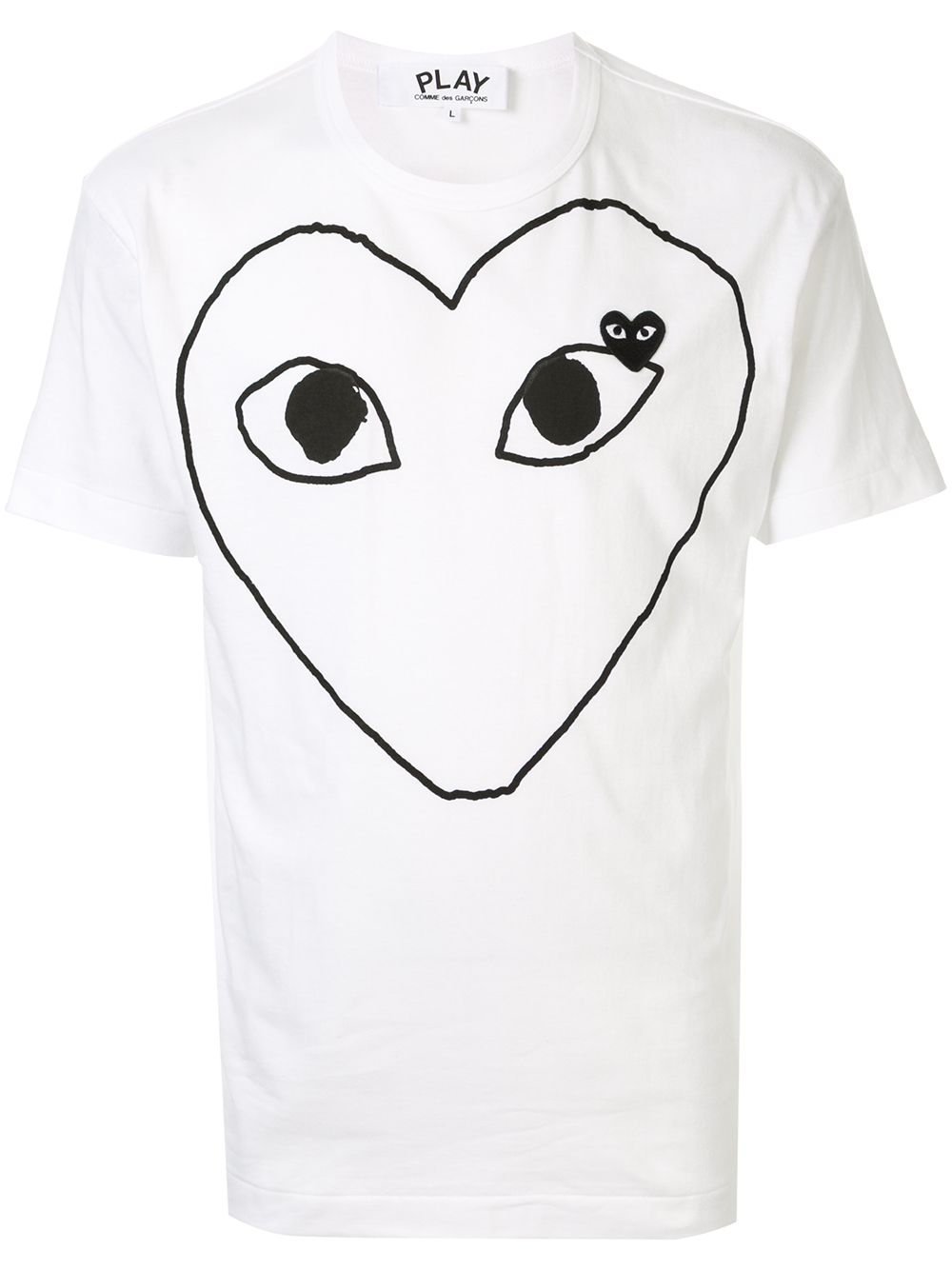 White cotton logo print T-shirt from Comme Des Garçons Play featuring a round neck, short sleeves and a straight hem.