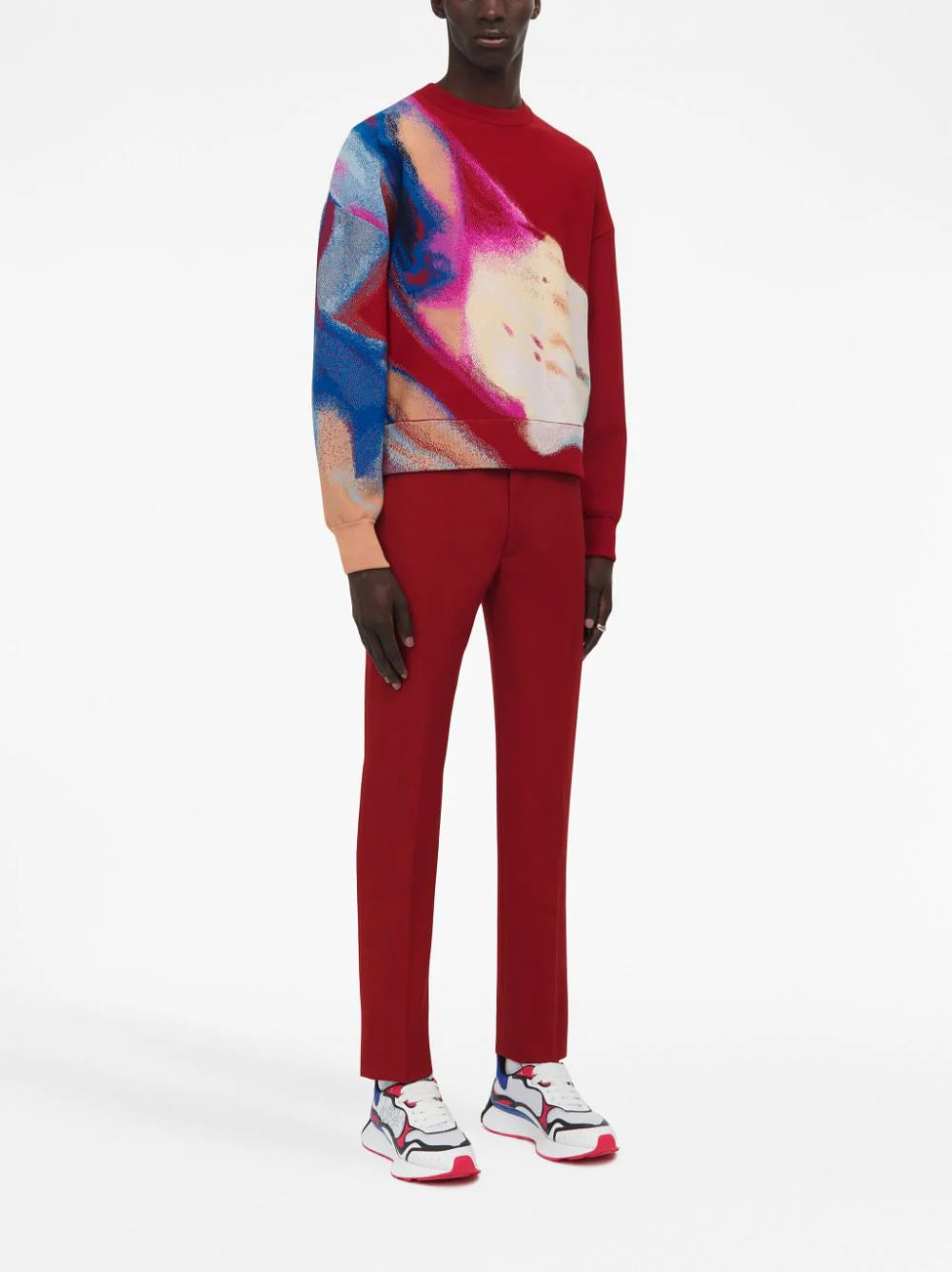 Luminous Flower jacquard jumper from Alexander McQueen featuring red, multicolour, knitted construction, jacquard, crew neck, drop shoulder, long sleeves, straight hem and ribbed trim.