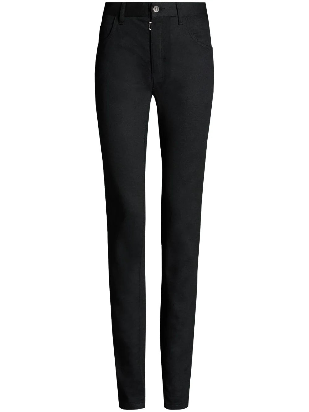 Memory-of five-pocket jeans from Maison Margiela featuring black, cotton blend, denim, stretch-design, signature four-stitch logo, contrast stitching, belt loops, front button and zip fastening, classic five pockets, straight leg and straight hem.