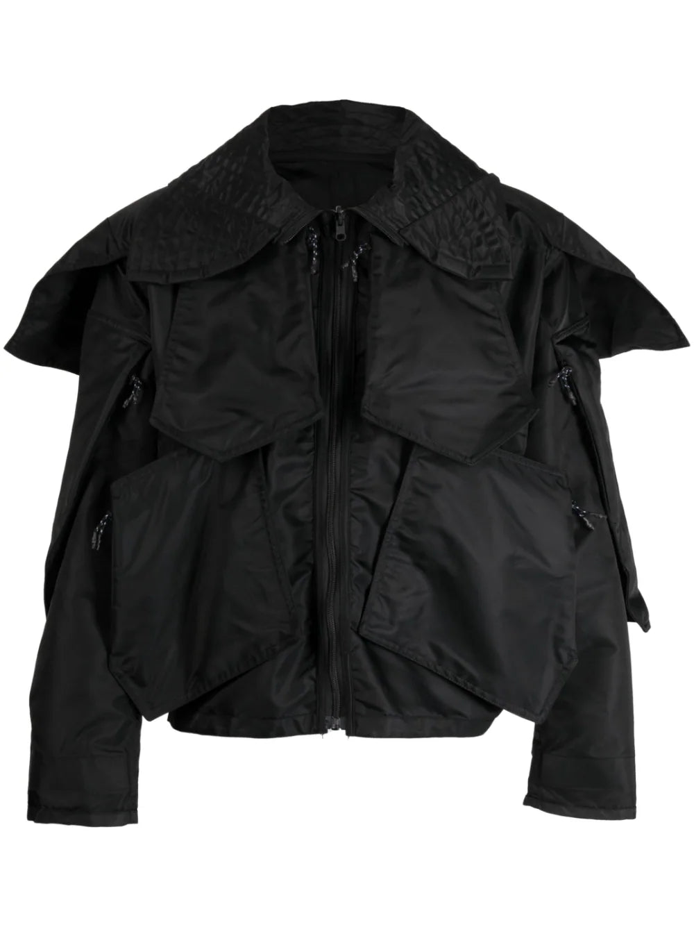 oversize-pointed-pocket jacket from MCQ featuring jet black, oversize pendant, oversized pointed collar, front zip fastening, long sleeves and straight hem.