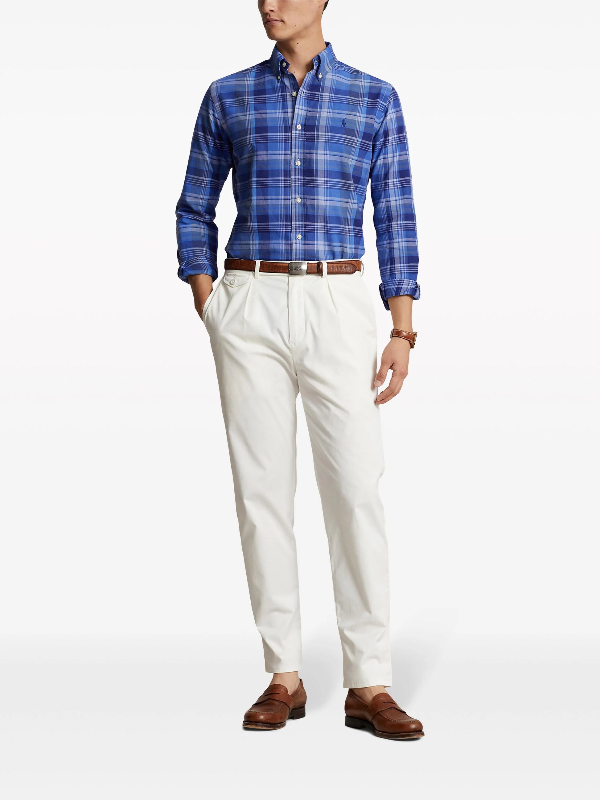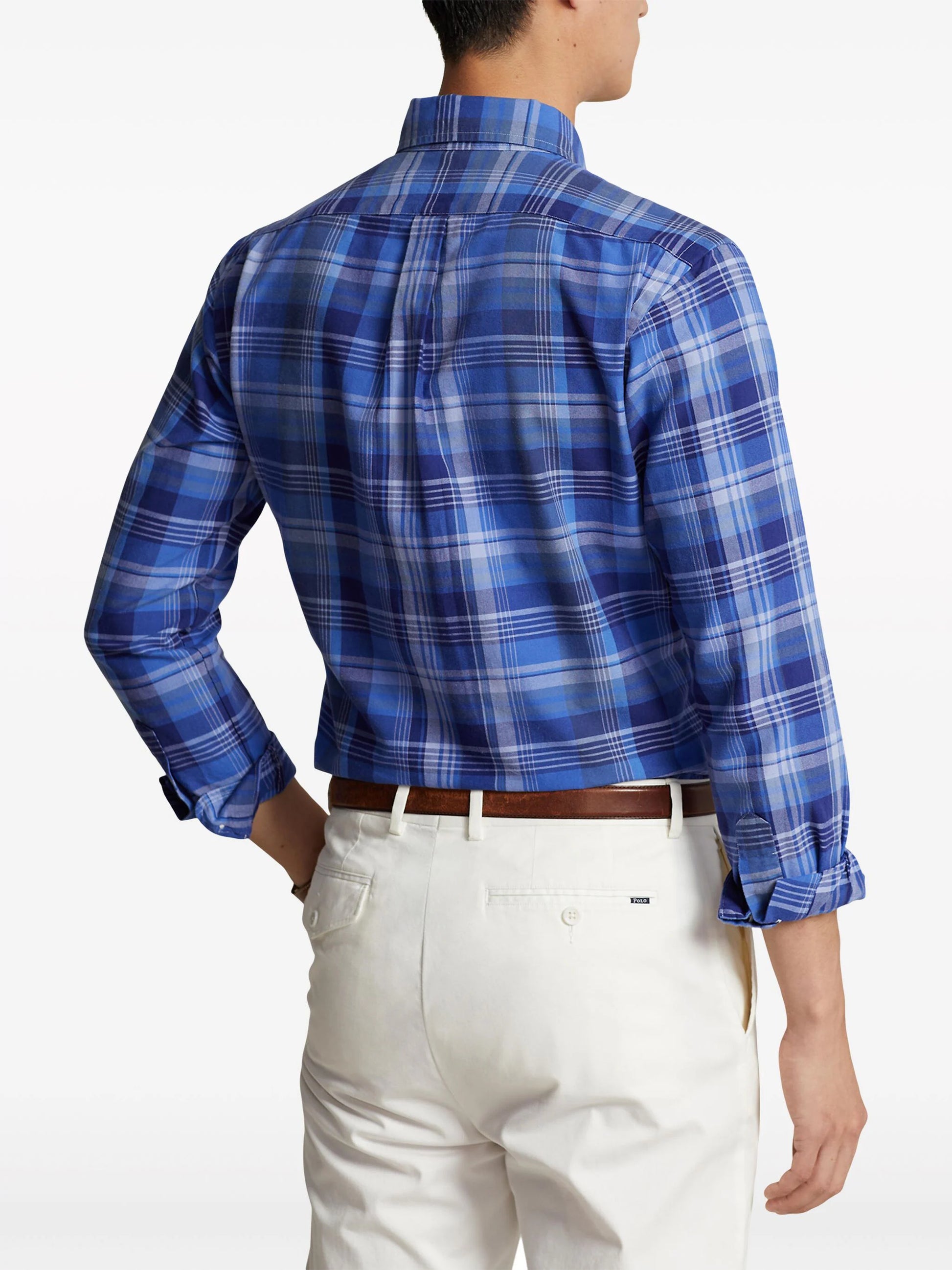 oxford blue/multicolour cotton plaid check print embroidered logo at the chest signature Polo Pony motif button-down collar front button fastening shirt sleeves buttoned cuffs curved hem