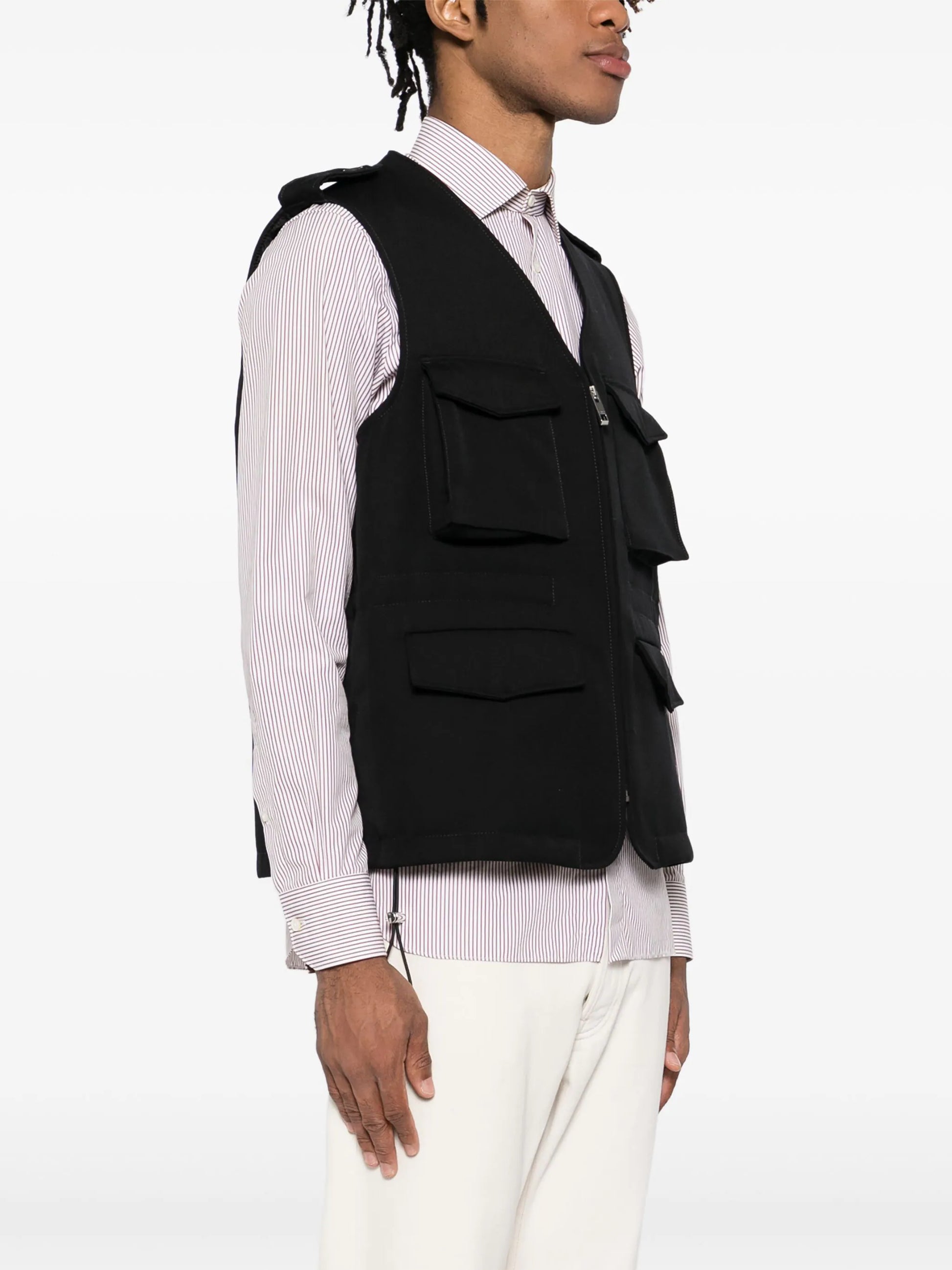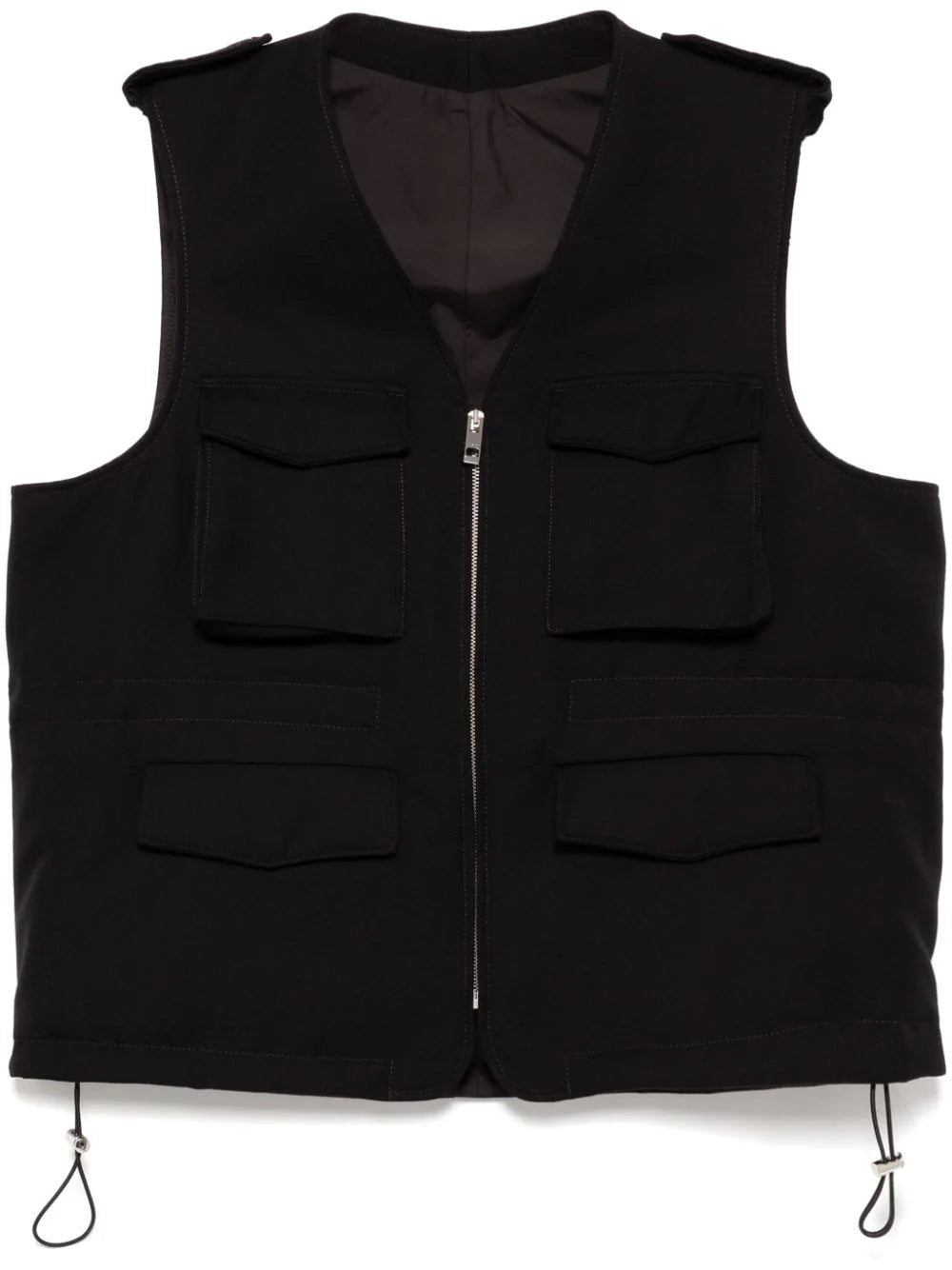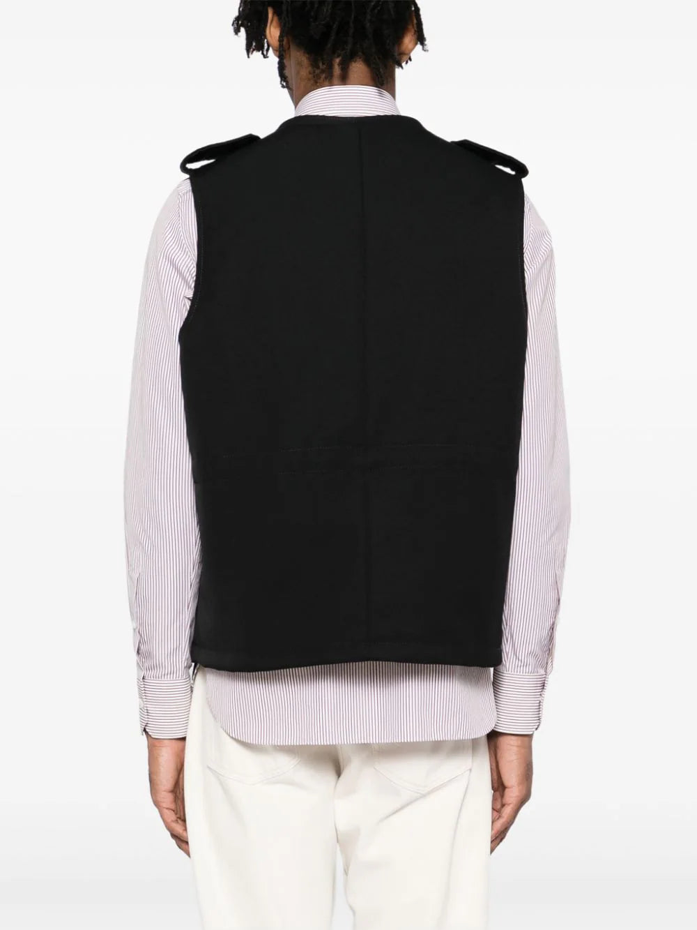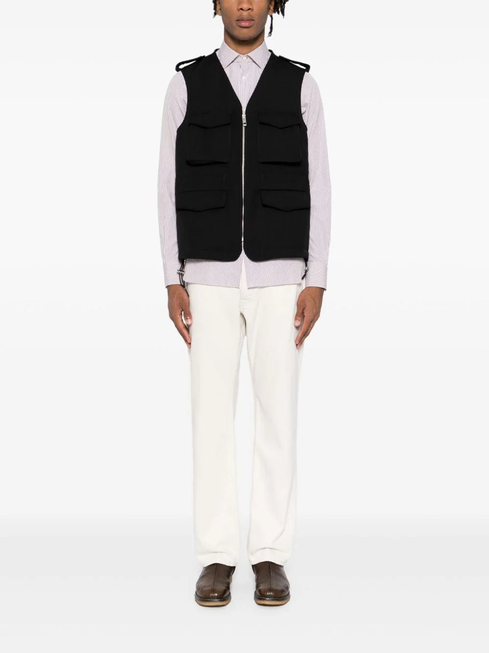 Indulge in ultimate comfort and style with our Padded Gilet. Sophisticated yet functional, it features a black front zip fastening, two button-fastening straps and pockets, and a fully lined sleeveless design. Perfect for any occasion, this gilet will elevate any outfit and keep you warm with its elasticated hem.