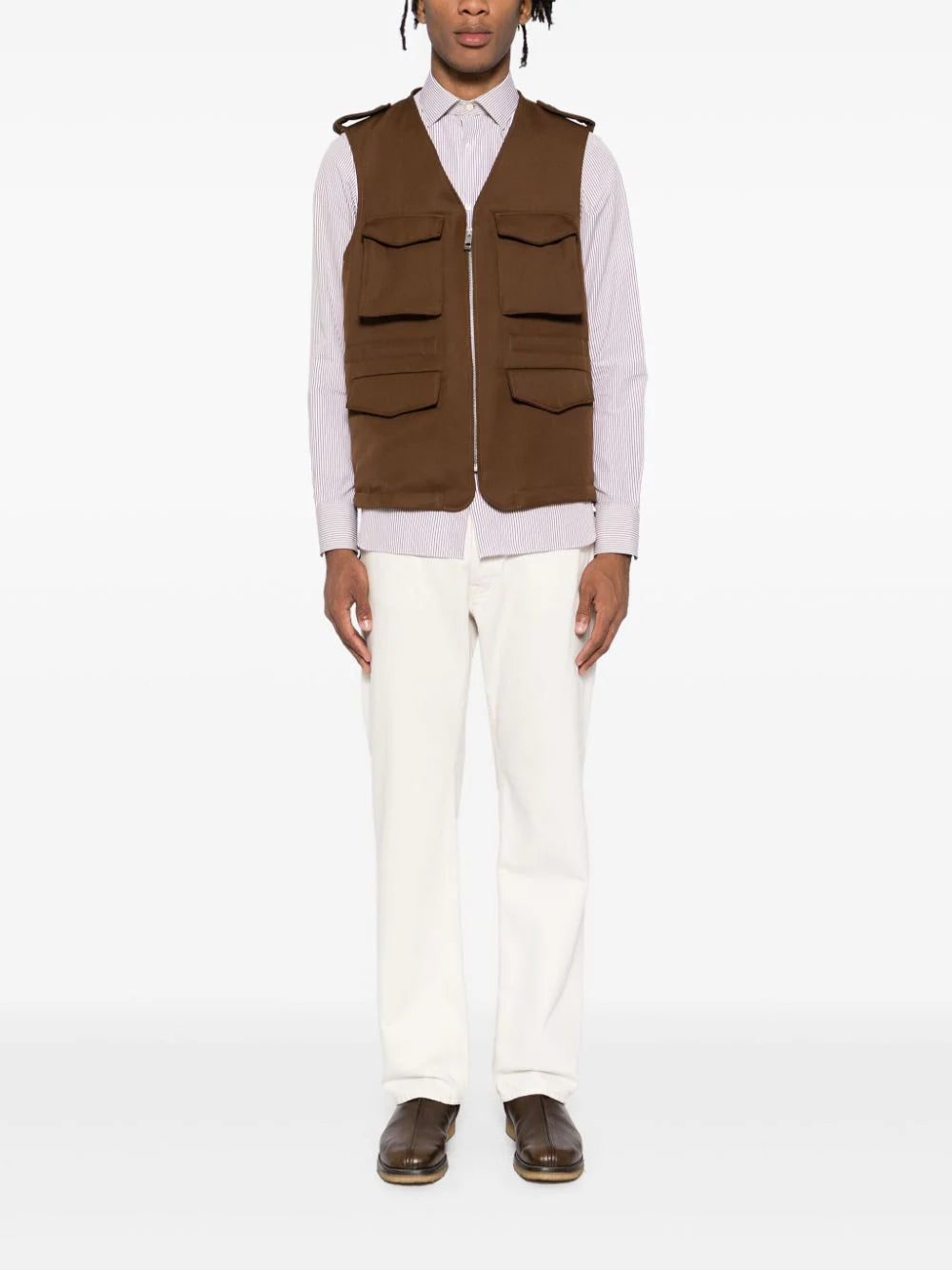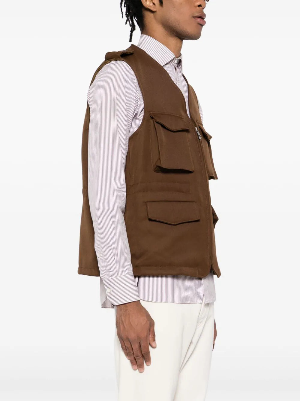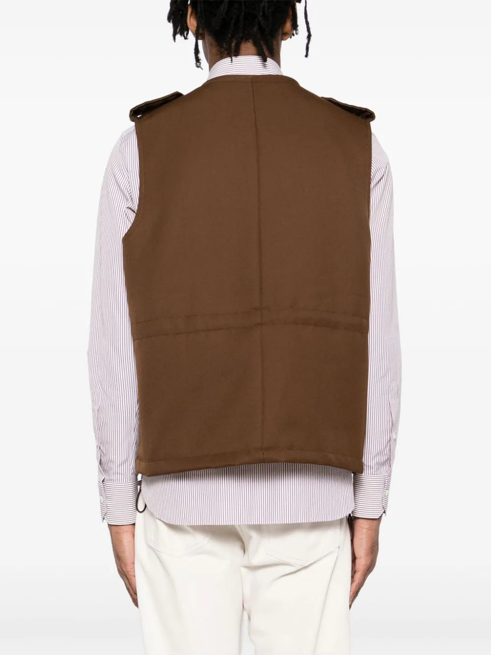 Expertly designed for both style and functionality, our padded gilet is perfect for any outdoor adventure. With a rich chocolate brown color, this gilet features a full front zip fastening, two button-fastening shoulder straps, and four spacious pockets for carrying essentials. The sleeveless design allows for ease of movement, while the elasticated hem provides a comfortable and secure fit. Fully lined for added warmth and durability.