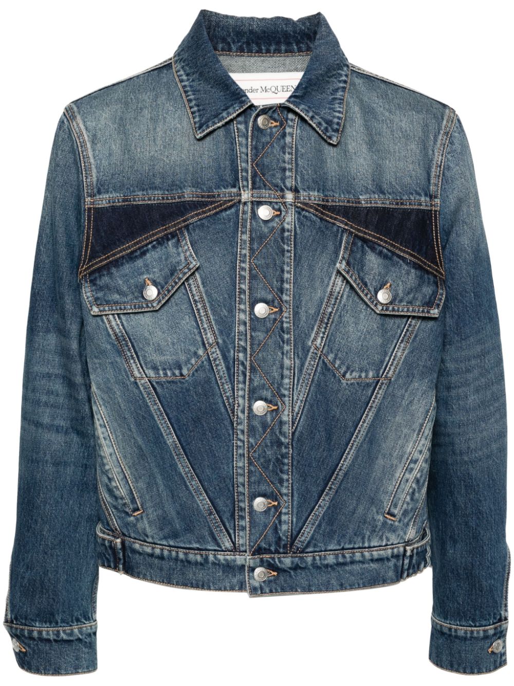 Expertly crafted with indigo blue and navy blue washed denim, this panelled denim jacket features a spread collar and long sleeves with buttoned cuffs for a stylish yet functional look. Complete with multiple pockets and waist tabs, it's the perfect mix of practicality and fashion.