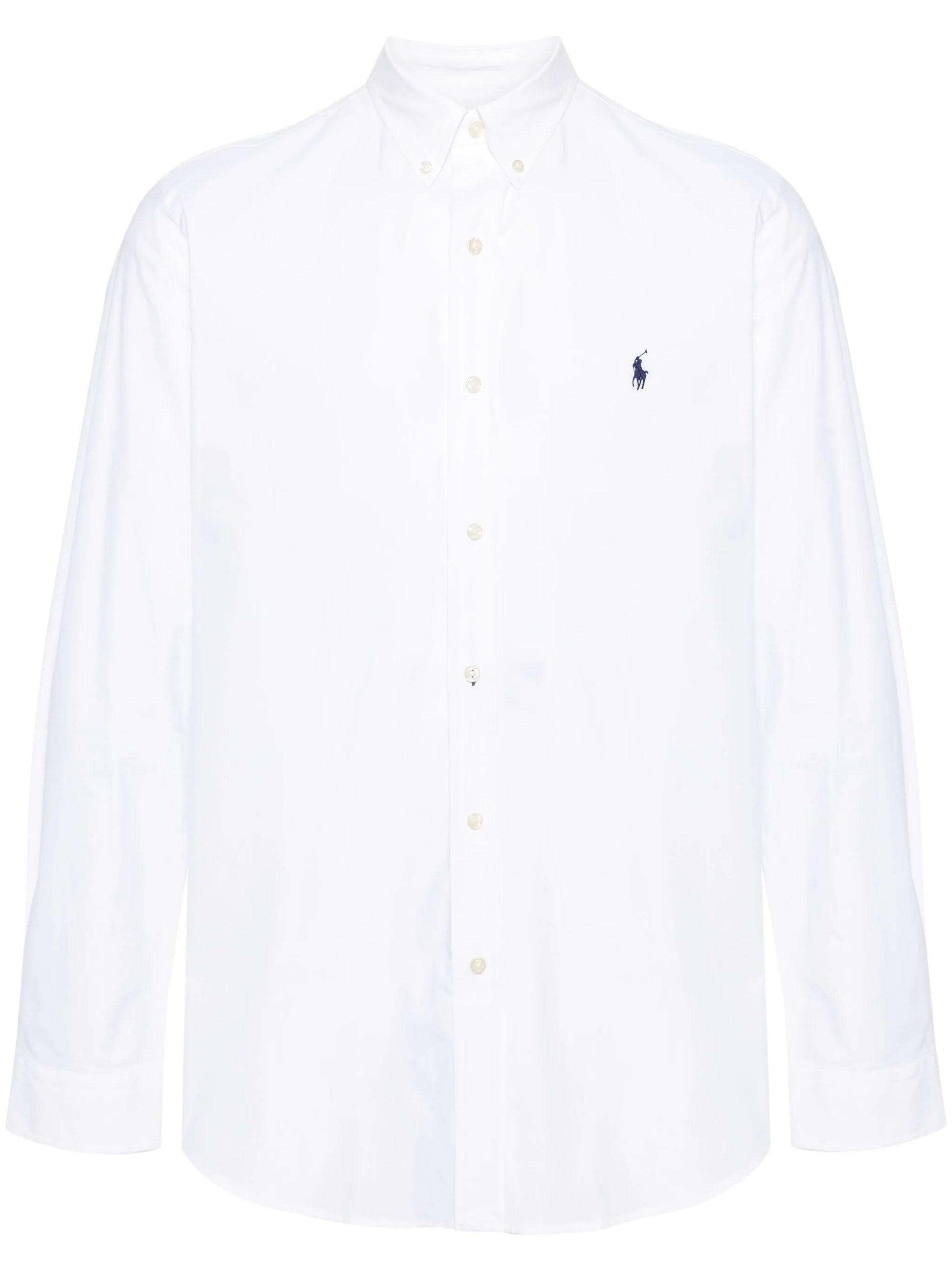 white stretch-cotton embroidered signature Polo Pony motif box-pleat detail button-down collar button fastening long sleeves buttoned cuffs high-low hem