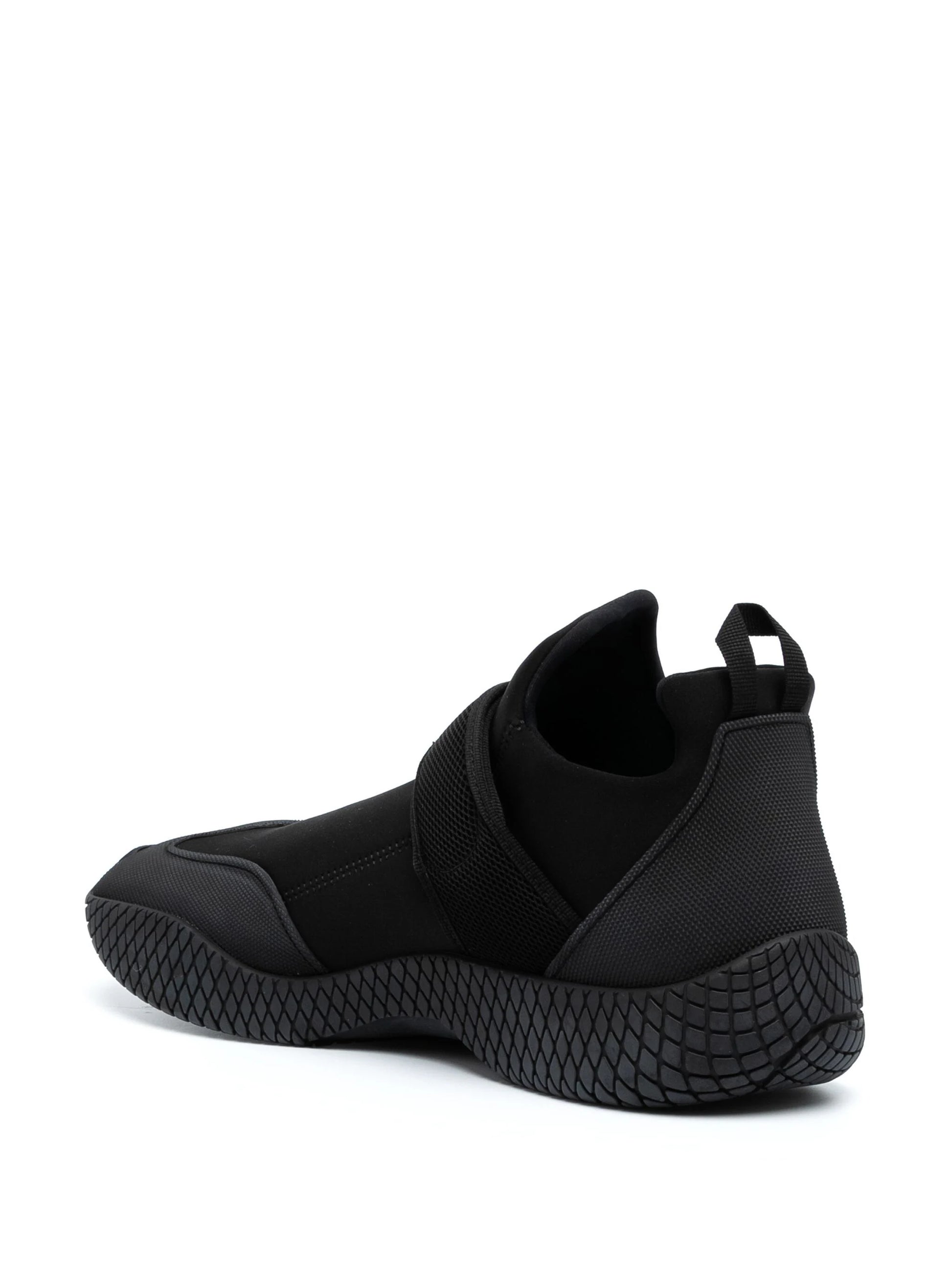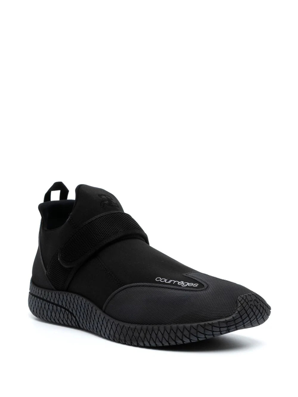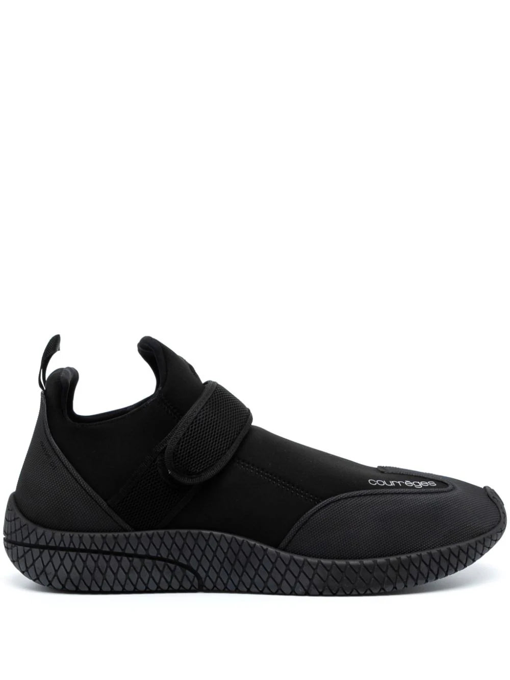 black neoprene construction panelled design logo print to the front touch-strap fastening branded insole pull-tab at the heel rubber sole