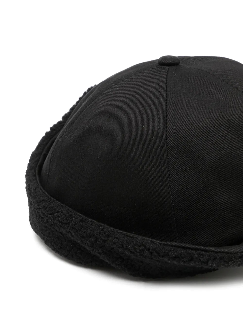 This Shearling-Ear Cap features a black six-panel construction, curved peak and round crown. Crafted with precision, it offers sleek styling and a comfortable fit. Protect your ears from the cold, while making a fashion statement. Increase warmth and elevate your style with this classically designed cap.