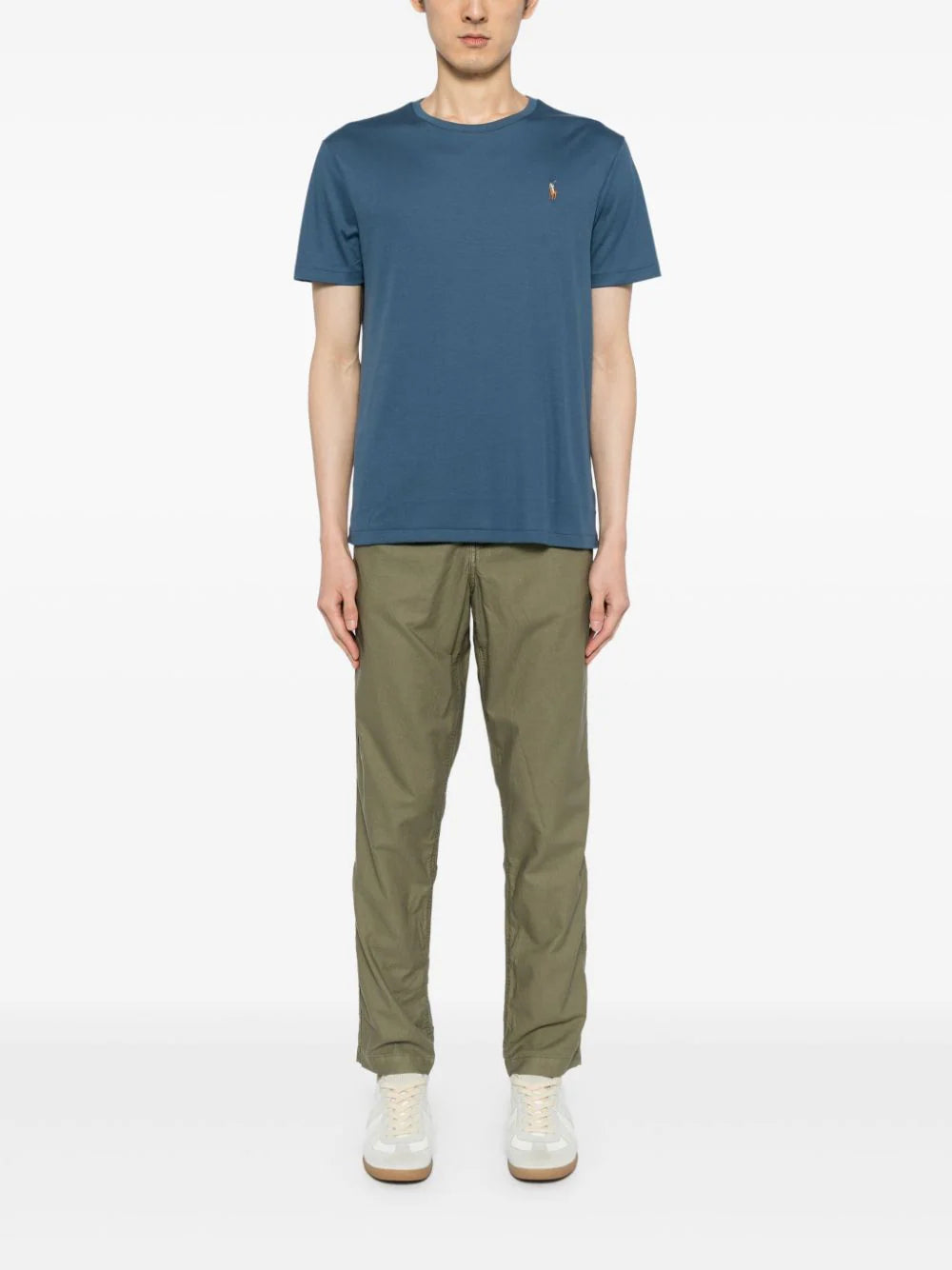 navy blue cotton jersey texture signature Polo Pony motif crew neck short sleeves straight hem