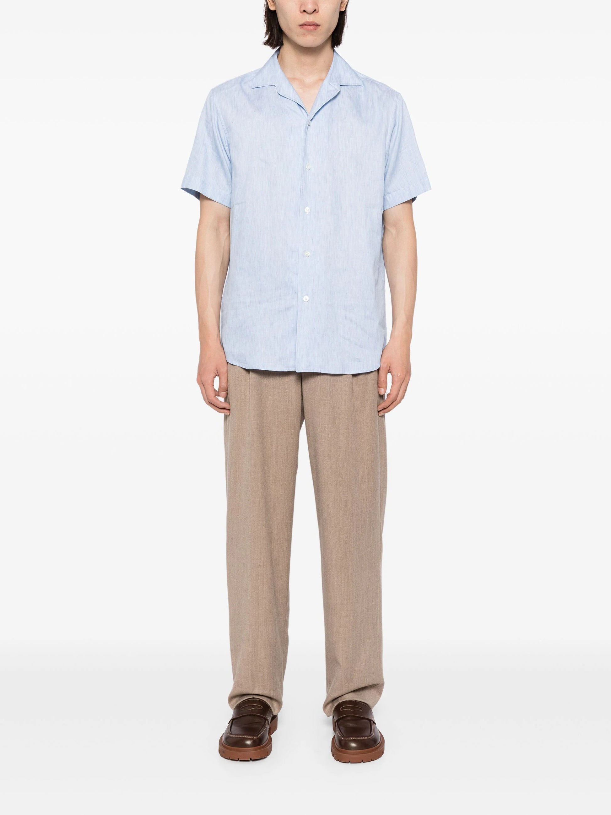sky blue cotton blend short sleeves front button fastening camp collar curved hem