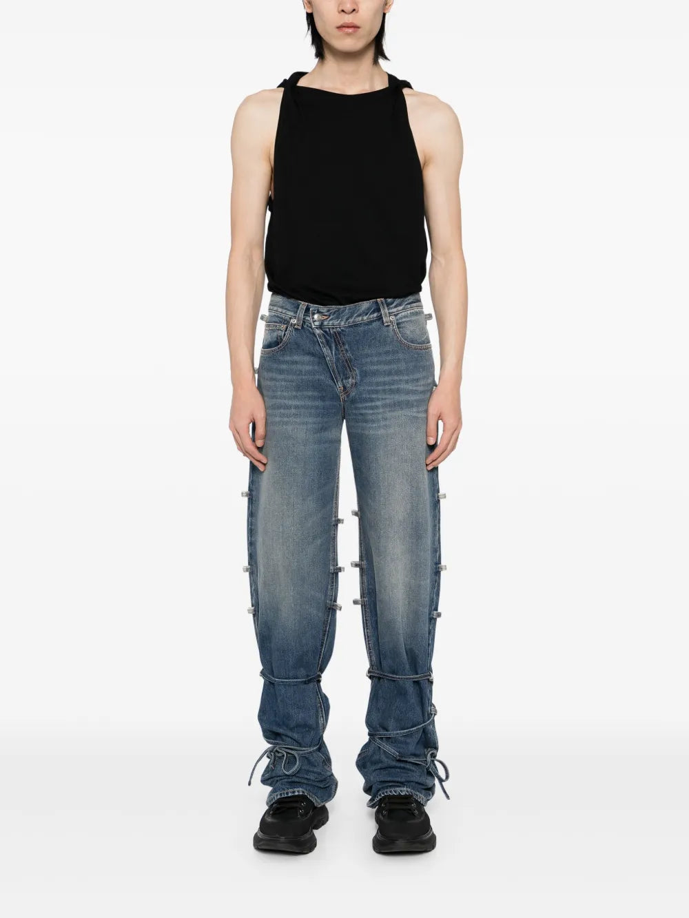 Upgrade your denim game with our Straight-Leg Jeans. With its indigo blue color, front button fastening, and classic five pockets, these jeans offer a timeless and versatile look. The belt loops and contrast stitching add an extra touch of style. Perfect for any occasion, these jeans will elevate your wardrobe.