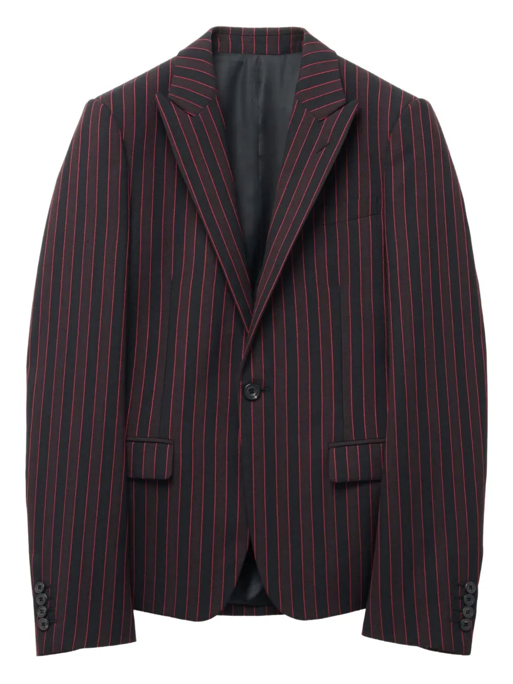 Effortlessly stylish and versatile, our Striped Blazer is a must-have for any wardrobe. The black front button fastening, chest welt pocket, and two side flap pockets provide functionality, while the buttoned cuffs add a touch of sophistication. Perfect for both professional and casual occasions.