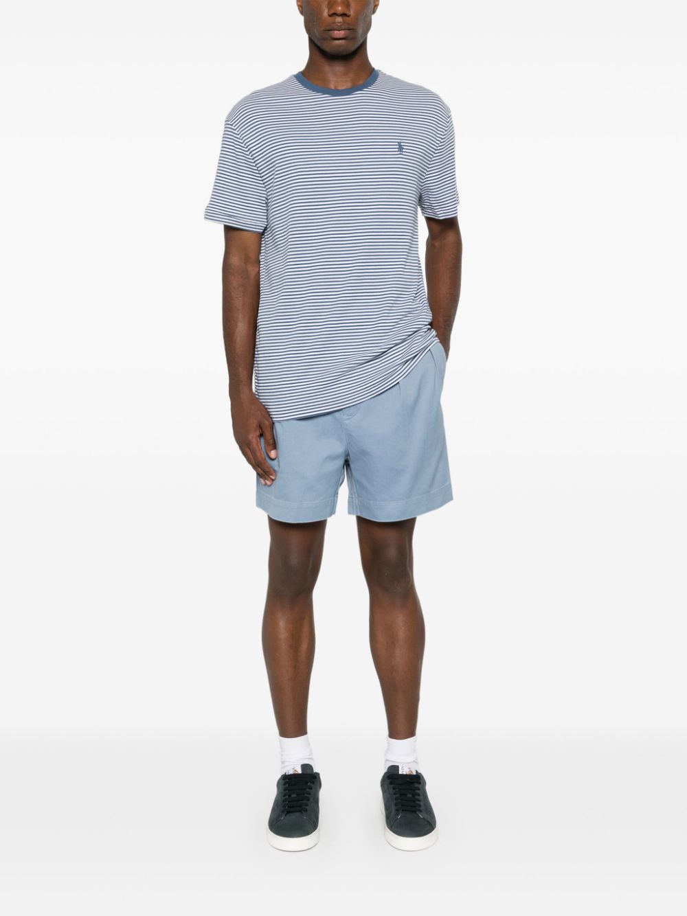 This blue and white striped cotton t-shirt in jersey texture features the signature Polo Pony embroidered logo at the chest. With a classic crew neck, short sleeves, and straight hem, it's a versatile and stylish addition to any wardrobe. Made of high-quality cotton, it offers comfort and durability.