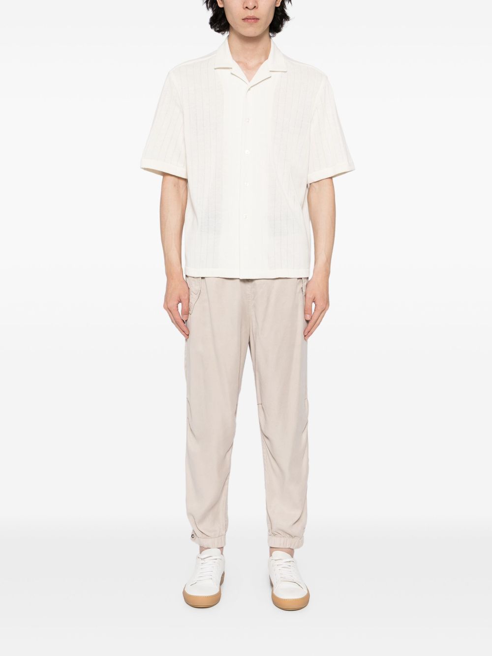 This Striped Shirt features a white front button fastening and short sleeves for a comfortable and stylish fit. Made with high-quality materials, this shirt is perfect for any occasion and adds a touch of sophistication to your wardrobe. Stay cool and trendy with this must-have piece.