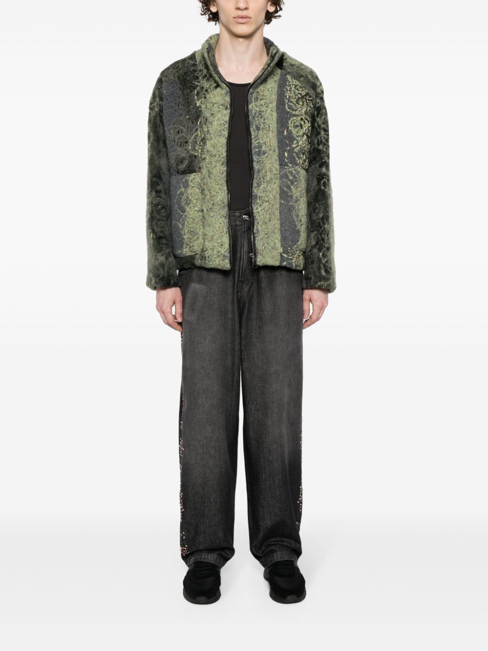 black cotton washed denim stud embellishment rhinestone embellishment straight leg mid-rise belt loops concealed fly and button fastening classic five pockets