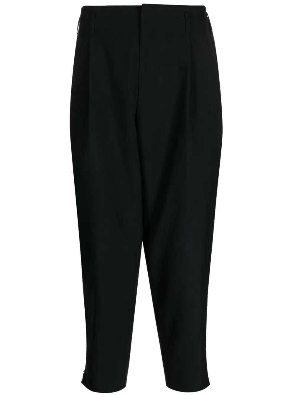 black wool belt loops cropped leg tapered leg concealed front fastening rear jetted pocket rear flap pocket