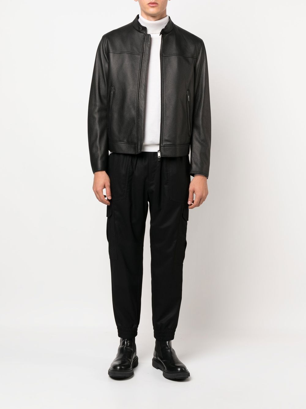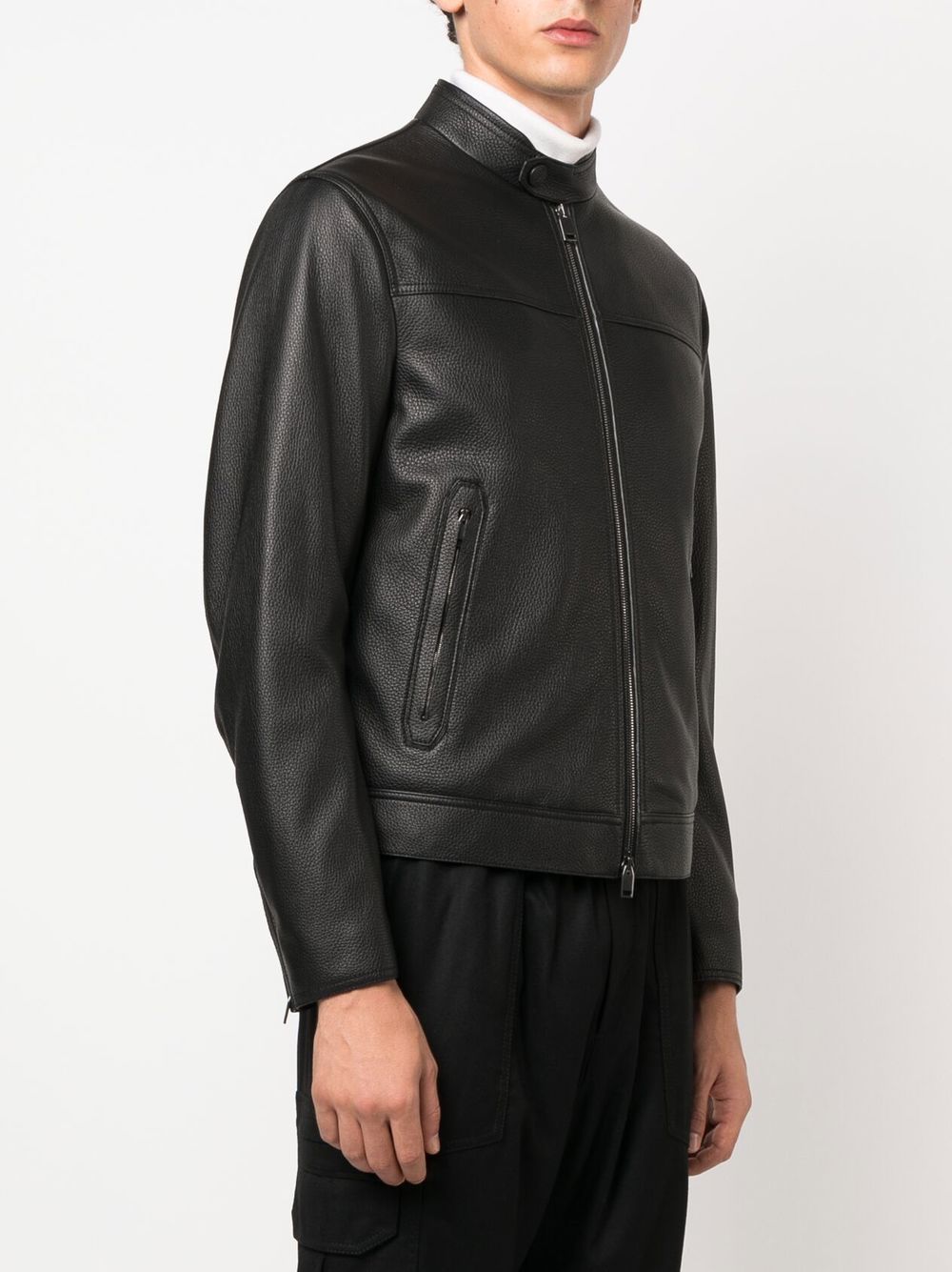 zip-front leather jacket from BRIONI featuring olive black, band collar, long sleeves, cuff zips, front two-way zip fastening and two side zip-fastening pockets.
