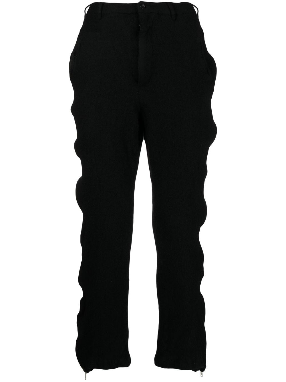 wool zipper-trim trousers from BLACK COMME DES GARÇONS featuring black, decorative zip detailing, belt loops, front button and zip fastening, two side slash pockets and cropped leg.